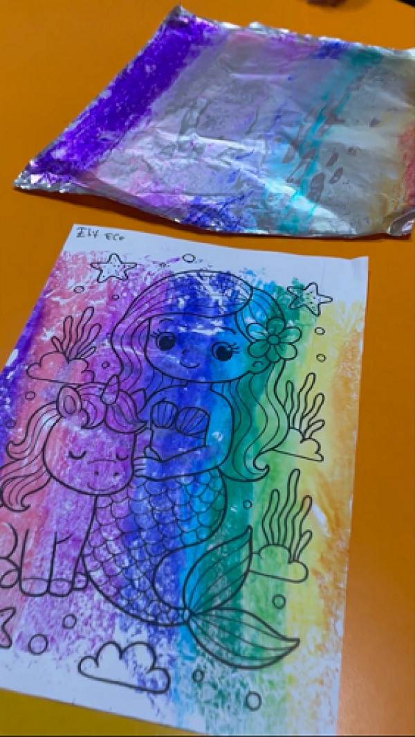 ✨ 6 Yaş B sınıfı öğrencilerimizden sihirli bir deney! ? Miniklerimiz, alüminyum yüzeyi özenle boyadıktan sonra sevdikleri çizgi film karakterlerinin bulunduğu kâğıtları ıslatarak üzerine yapıştırdı. Renklerin ve hayal güçlerinin birleştiği bu eğlenceli etkinlikte ortaya birbirinden güzel çalışmalar çıktı. ? Hem öğrenip hem eğlenen öğrencilerimizi keyifle izle