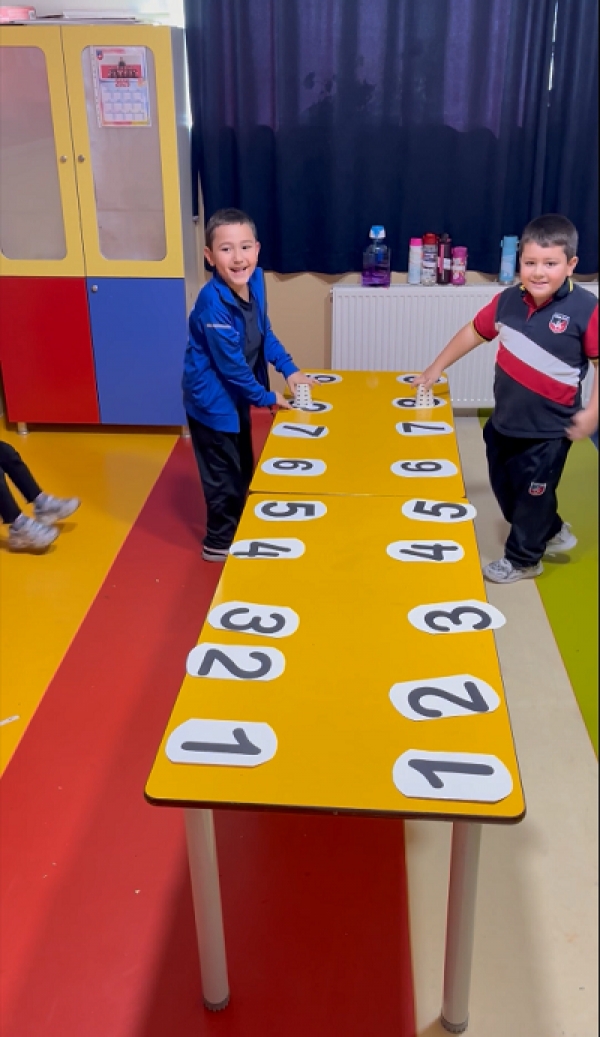 6 yaş B sınıfı öğrencileri öğrendiği sayıları tekrar etme ve hızlı bir şekilde bulma oyunu oynuyor.