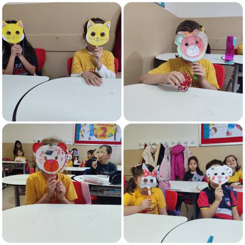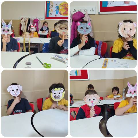 2/B sınıfı öğrencileriyle" 4 Ekim Hayvanları Koruma Günü" kapsamında sunumumuzu izledik ve hayvan maskelerimizi yaptık.
