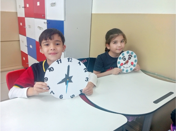 2/A sınıfı öğrencileri saatler konusunu sadece öğrenmekle kalmayıp kendi tasarladıkları saatlerle adeta yaşayarak keşfettiler. ? Her biri özenle hazırladıkları çalışmalarla zamanı okuma becerilerini geliştirirken aynı zamanda hayal güçlerini ve el becerilerini de ortaya koydular. Eğlenerek öğrenmenin en güzel örneklerinden birini sergileyen miniklerimiz, birlikte üretmenin ve başarmanın mutluluğunu yaşadılar.